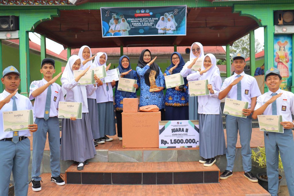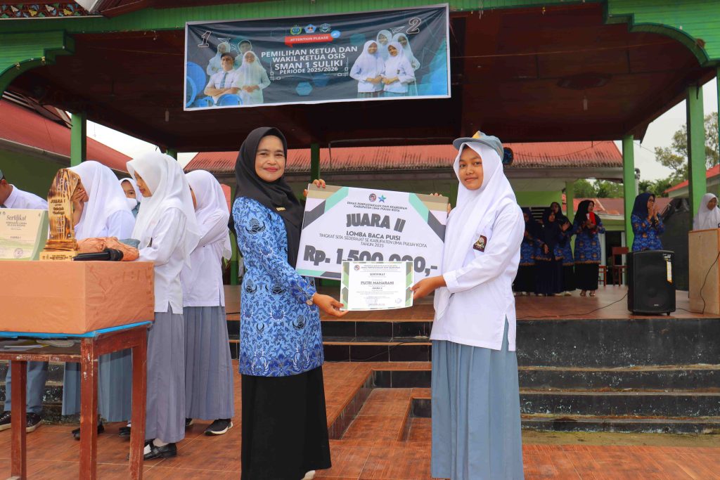 Selain prestasi tersebut, siswa SMAN 1 Suliki juga menorehkan sukses di bidang literasi. Putri Maharani, siswi kelas X E.1, keluar sebagai Juara II Lomba Baca Puisi pada Festival Literasi Tingkat SLTA se-Kabupaten Lima Puluh Kota. Kegiatan yang diselenggarakan oleh Dinas Perpustakaan ini menjadi ajang pengembangan bakat dan minat siswa dalam seni sastra, khususnya dalam bidang apresiasi puisi.