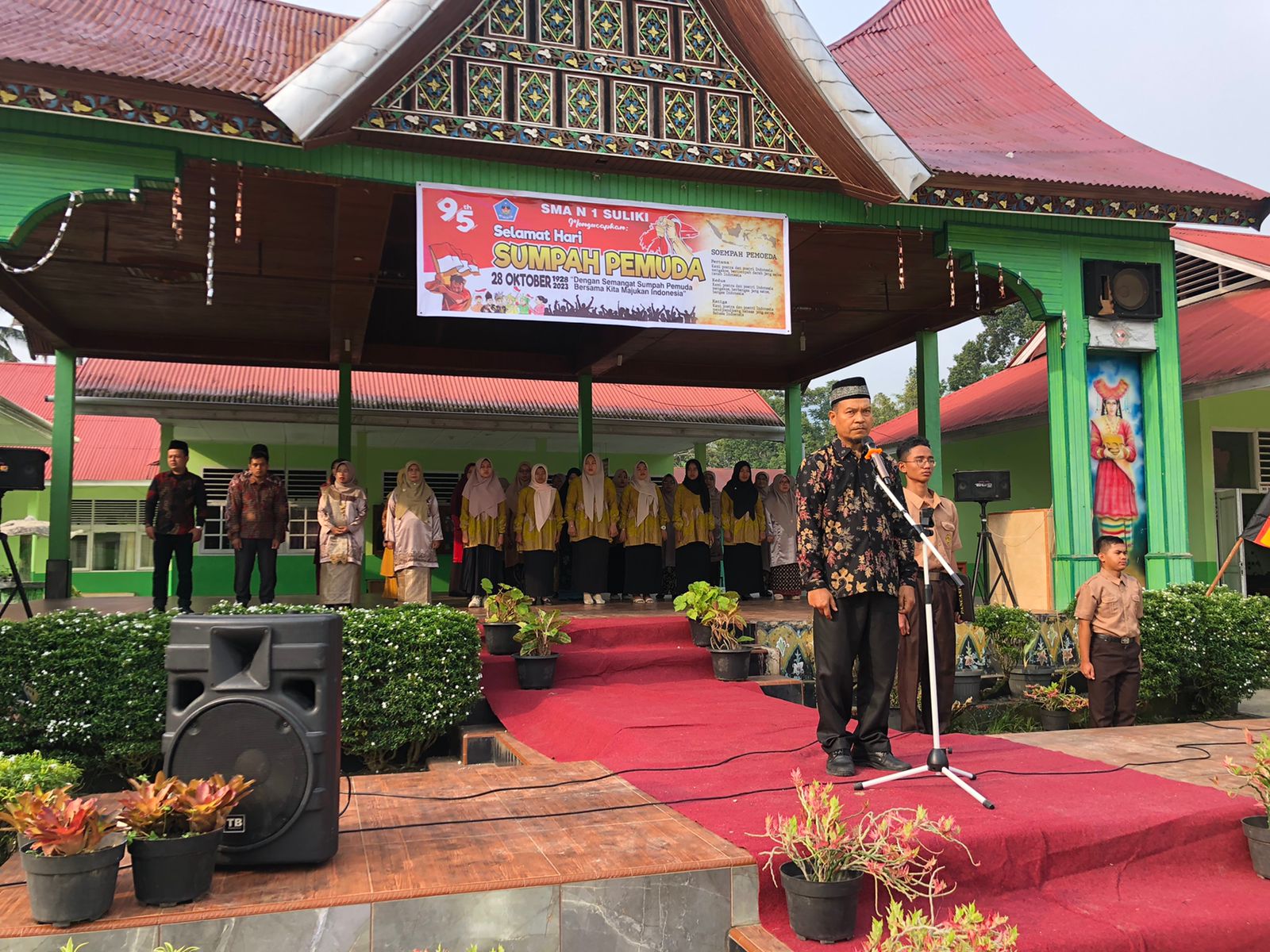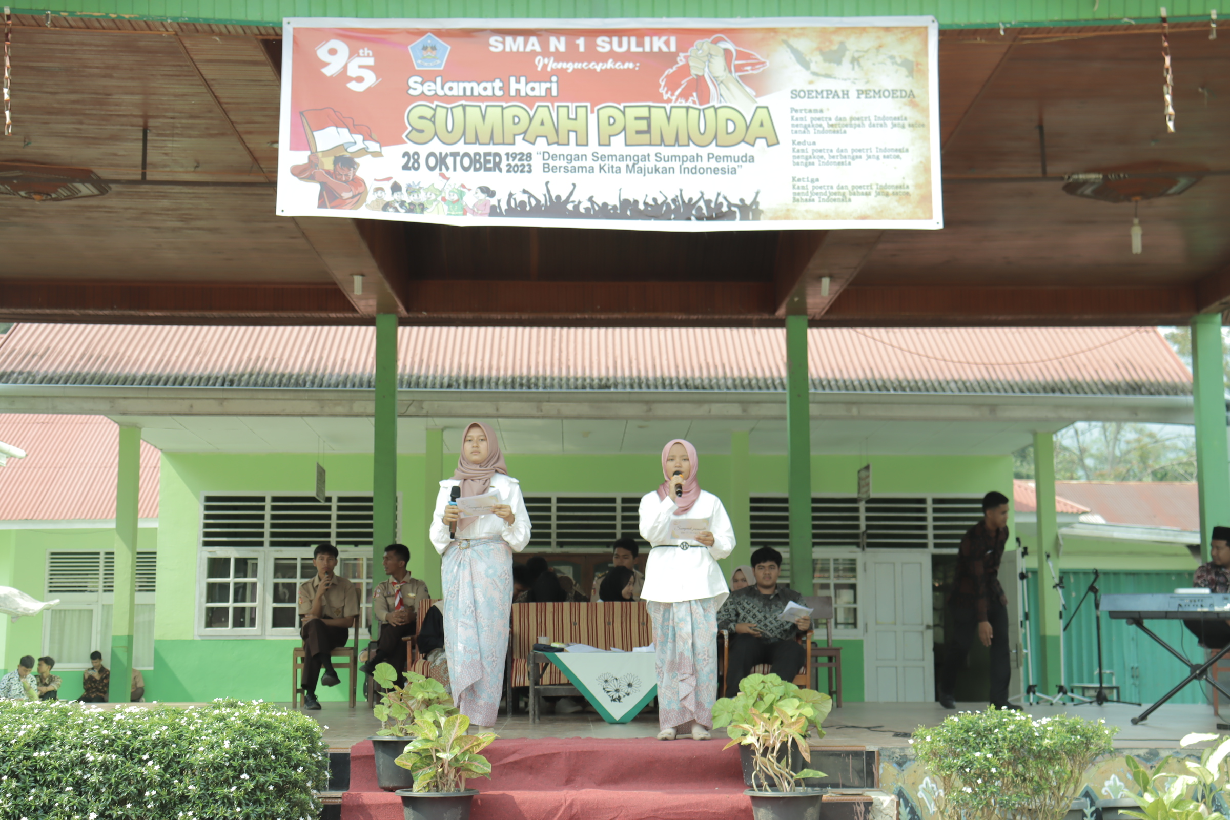 Limbanang, 28 Oktober 2023 – Peringatan Hari Sumpah Pemuda merupakan hari yang bersejarah untuk negara Indonesia, maka untuk memperingati hari penting ini dengan itu SMAN 1 Suliki Melaksanakan Upacara Sumpah Pemuda pada hari Sabtu jam 07.00 WIB. di lapangan Sekolah secara hikmat. Peringatan ini merupakan momentum untuk mengingat kembali perjuangan para pemuda Indonesia dalam memperjuangkan kemerdekaan dan kemajuan bangsa.